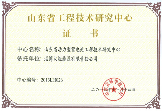 山東省動力型蓄電池工程技術(shù)研究中心(2013年)